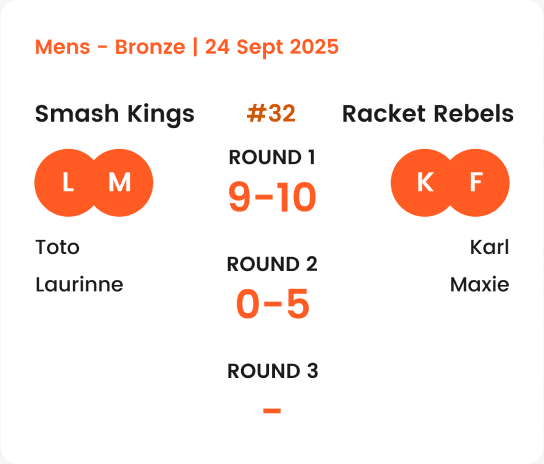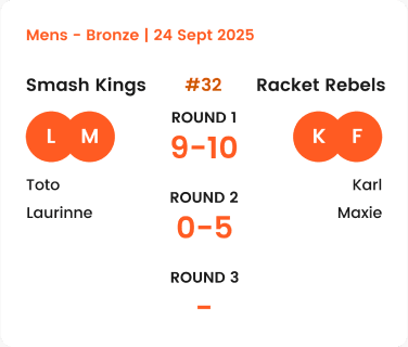 Organize matches by event, day, or court.
